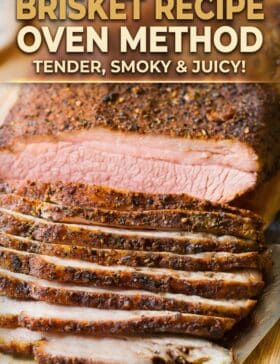 Our Texas Style Oven Brisket Recipe is a simple smoky brisket recipe with a zesty dry rub, that can be made in the oven, instead of a smoker.