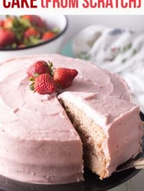 Homemade Strawberry Cake – This scratch-made cake recipe is brimming with fresh strawberries, and is easy to make even WITHOUT a boxed cake mix or jello! Top the sweet and fluffy cake with strawberry cream cheese frosting for the ultimate summer dessert.