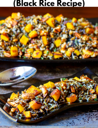 Forbidden Black Rice Recipe – You will love this earthy flavorful Forbidden Rice with Acorn Squash and Pecans. It’s a marvelous fall and holiday Black Rice Recipe that adds color and texture to the dinner table.
