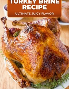 Brine in its simplest form is just water and salt. However, our Turkey Brine Recipe offers a little more flavor from sugar, herbs, and spices.