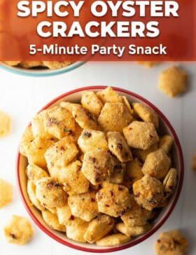 Find the full Spicy Oyster Crackers recipe (or Spicy Seasoned Saltines!) with ingredient proportions, detailed instructions, and video tutorial in the printable form at the bottom of the post.
