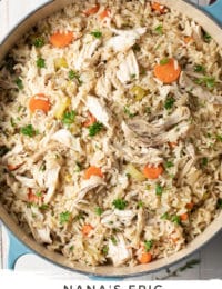 This nostalgic and nourishing chicken and rice recipe is one of those dishes that you’ll make on repeat. It’s cozy and it’s loaded with serious flavor thanks to Nana’s staple chicken and rice spices like garlic, thyme, and a hint of cumin.