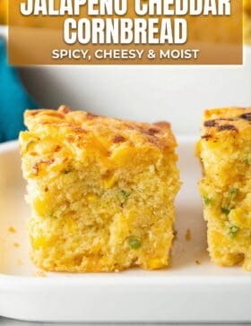 Serve the fluffiest, most flavorful cornbread loaded with cheese and jalapenos alongside nearly any classic southern dish. It is delicious with mains like Coca-Cola Baked Ham, Grilled Pork Chops, or Slow Cooker Pulled Pork… And is a great addition to other sides like Southern Collard Greens and Cheesy Southern Squash Casserole.