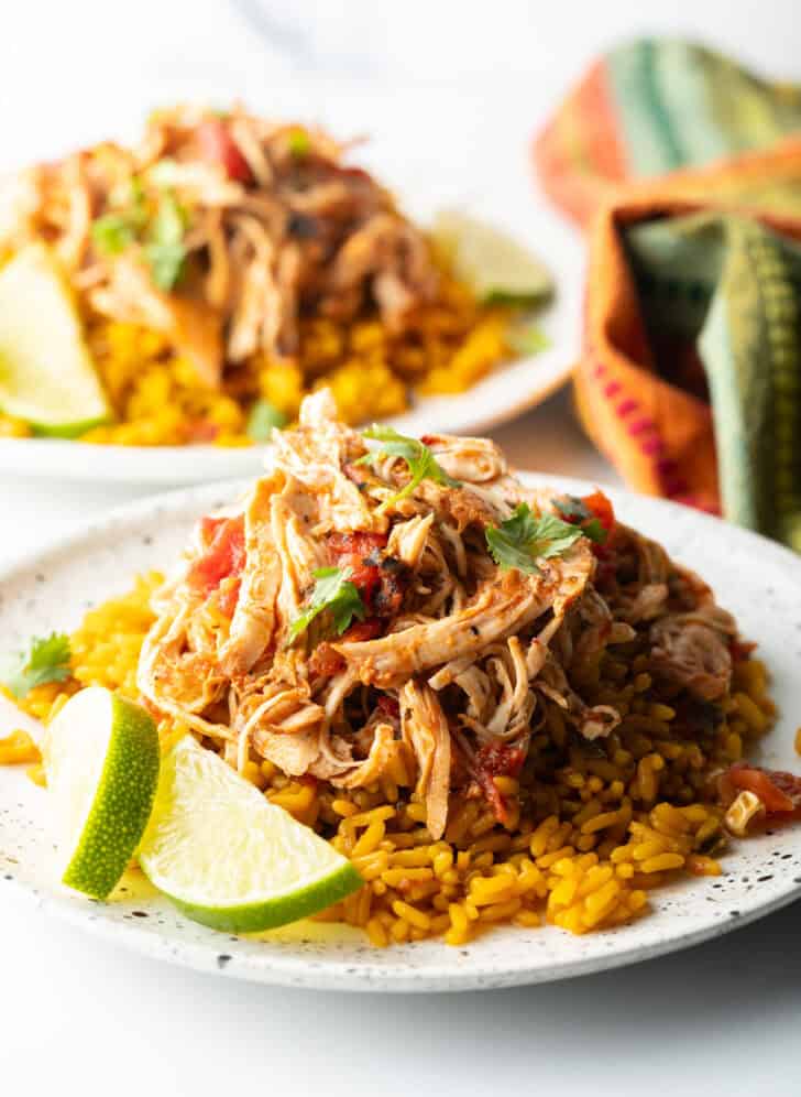Our stovetop chicken taco meat recipe is very quick, and this marinated grilled pollo asado recipe is great to prep ahead. However, if you’re looking for a simple, zesty chicken recipe that requires minimum effort and can be quickly thrown together, this “set and forget” slow cooker Mexican shredded chicken recipe is just right for you! You can get things going in the morning before work, then enjoy an easy and totally stress-free dinner at the end of the day.