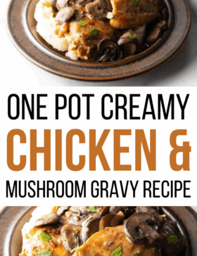 This easy and ultra-cozy creamy mushroom chicken recipe features tender and moist chicken breasts cooked in an irresistibly rich mushroom gravy. It’s quick to make in one pan, and is a true comfort food crowd pleaser for any occasion!