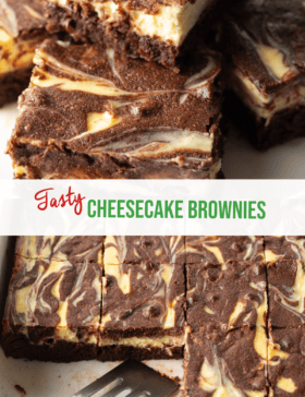 We have a glorious cheesecake brownie recipe with a silky Bailey’s cream cheese layer on top here on the site. However, if you’re looking for a classic Cheesecake Brownies recipe this is our favorite version.
