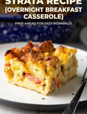 Fluffy Strata Recipe (Overnight Breakfast Casserole) – This easy make-ahead holiday breakfast is super quick to prep, then pop in the oven the next morning! It’s sure to become your go-to “special occasion” breakfast.