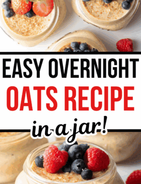 No-Cook Prep Ahead Magic – Spend a mere 10 minutes in the evening putting these oatmeal cups together in one bowl, then pop them in the fridge. Trust me, future you will be so grateful for your meal prepping thoughtfulness! This high protein overnight oats recipe makes 4-6 jars, perfect to get you through the week.
