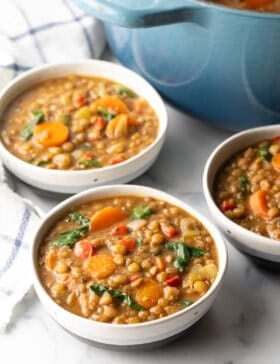 I’m a vegetarian and always on the hunt for easy veggie-packed dinners. This lentil soup was SO GOOD! Even my non-vegetarian boyfriend loved it!