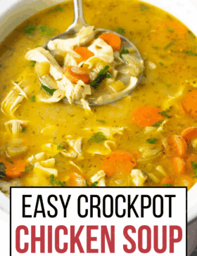 When I’m not feeling my best, or simply want a cozy all-in-one meal, I reach for this easy crockpot chicken noodle soup recipe. It’s packed with nourishing slow cooked chicken, fresh veggies, and tender egg noodles in a savory broth for the ultimate effortless comfort food that makes me feel good from the inside out, and tastes amazing!