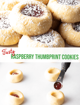 Easy Raspberry Thumbprint Cookie Recipe – These raspberry thumbprints are buttery, tender and crumbly, filled with fruity jam, and dusted with powdered sugar. They’re a delightful sweet treat that is great to customize and lovely to share!
