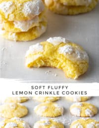 I also LOVE to turn these into ice cream sandwiches by layering a scoop of vanilla ice cream or sorbet in between two lemon crinkle cookies.