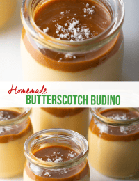 It’s the Italian word for pudding. Most budinos rely on eggs for thickening, instead of cornstarch (like American puddings). However, since this recipe starts with a thin butterscotch base, we added both eggs and cornstarch to thicken it properly.