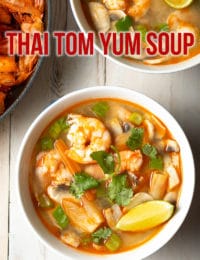 Serve tom yum soup in large soup bowls with fresh lime wedges and cilantro. Tom yum is often served over rice, however, it’s low carb if served as is!