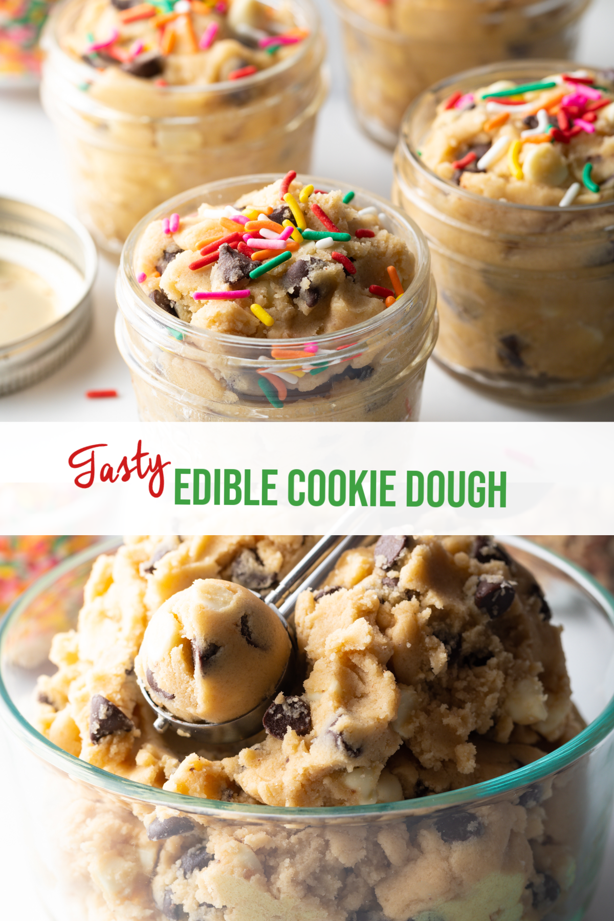- Other add-ins – Swap mini chocolate chips or use 1/2 and 1/2 with other tasty goodies. Try chopped nuts, dried fruit like raisins or cherries, or flavored chips like peanut butter, white chocolate chips, or butterscotch. You really can’t go wrong with your favorite cookie dough mix-ins!