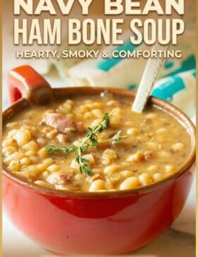 Nana’s Epic Navy Bean Ham Bone Soup Recipe is a simple, yet utterly rich and savory, ham and bean soup recipe is a great way to use your leftover holiday ham bone or make on a chilly winter day!