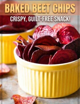 Oven-Baked Beet Chips Recipe – The absolute best beet recipe you’ll ever try. We share a baked veggie chip secret that makes this recipe crispy and flavorful!